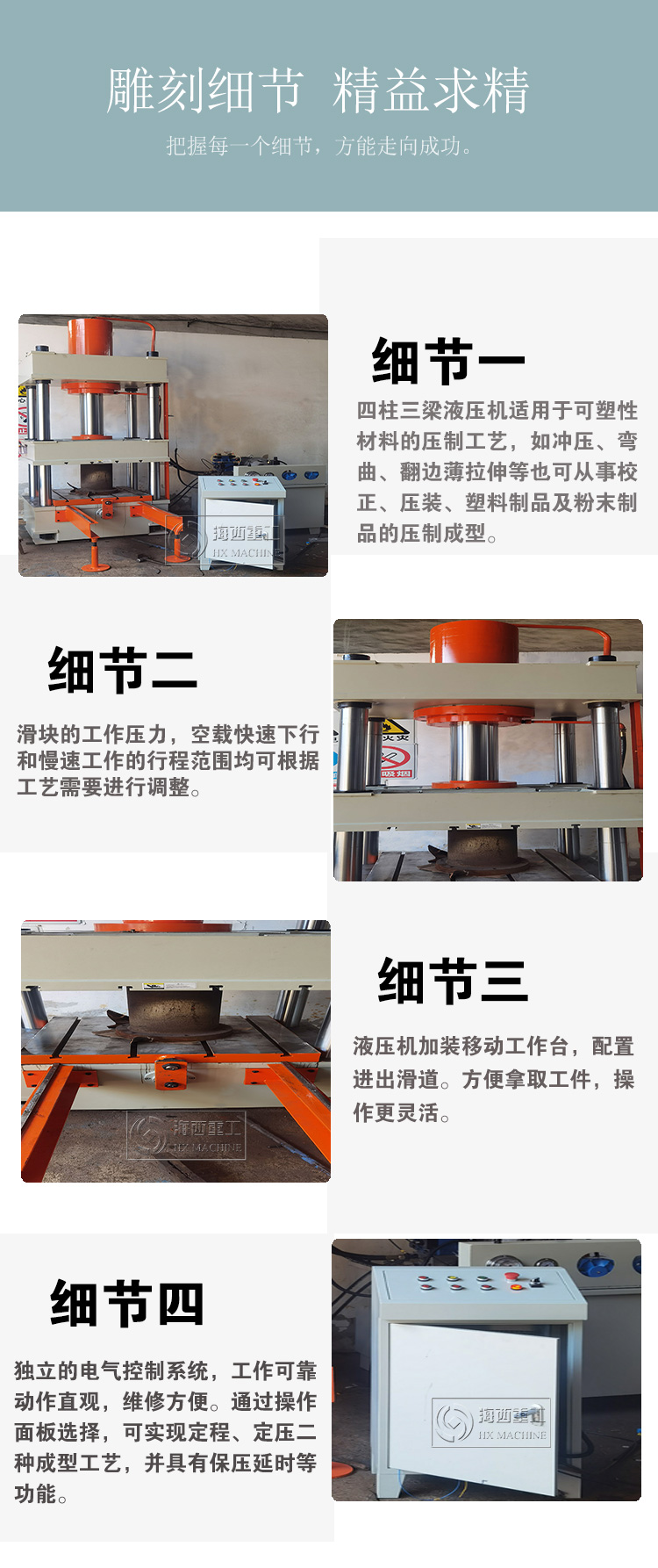簡(jiǎn)介:滕州市海西機(jī)床有限公司主要生產(chǎn)四柱液壓機(jī)、龍門(mén)液壓機(jī)和單臂校直機(jī)、100t液壓機(jī)、315t液壓機(jī)、500t液壓機(jī)以及多種汽保產(chǎn)品,數(shù)控鏜鼓機(jī)、大車(chē)定位儀、剎車(chē)片投鉚機(jī)、汽車(chē)大梁冷鉚機(jī)同時(shí)還生產(chǎn)搖臂鉆床、鉆銑床等設(shè)備,產(chǎn)品質(zhì)量?jī)?yōu)良,價(jià)格美麗。咨詢(xún)電話(huà)13165220009
